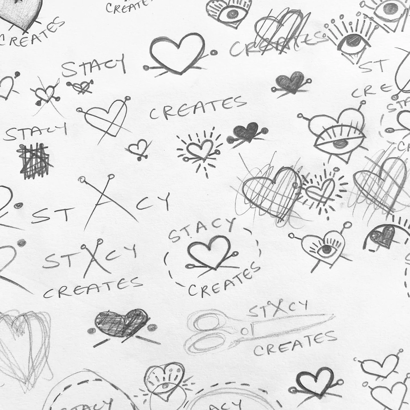 Every brand needs a logo, and I thought had my mind set on a heart with pins resembling a skull + crossbones. Several doodles later, I became a smitten with the this version, and how the pins + eye both represent the “I” in my last name, making the logo read “Stacy I Creates”.